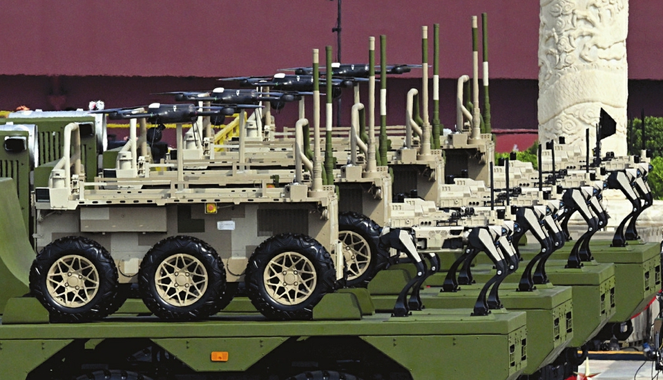 跨越险阻,无往不至。陆上无人作战方队3日上午通过天安门广场,接受祖国和人民检阅。