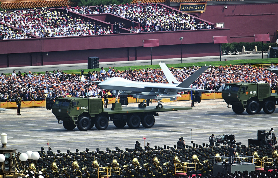 人工智能,空天争锋。空中无人作战方队3日上午通过天安门广场,接受祖国和人民检阅。