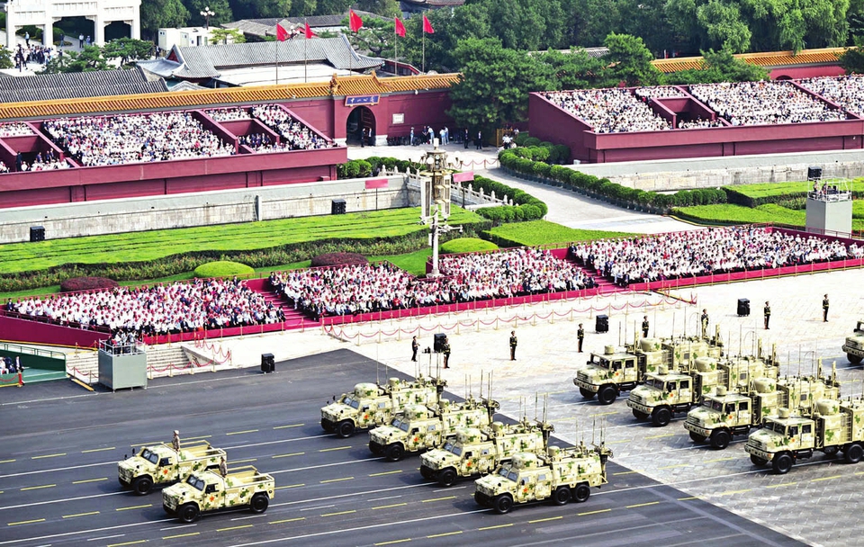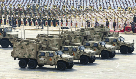 电子对抗方队3日上午经过天安门广场,接受祖国和人民检阅。