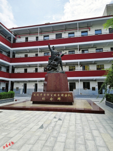 新学期伊始,清晨的阳光穿过校门内“师生抗日游击队”群雕的棱角,在地面投下斑驳的光影,仿佛是历史留下的密码。雕像上,师生们手握武器、眼神坚毅的姿态,让人仿佛穿越到那个战火纷飞的年代——教书先生与莘莘学子放下笔杆、拿起枪杆,用生命诠释了“成己成人”的真谛。