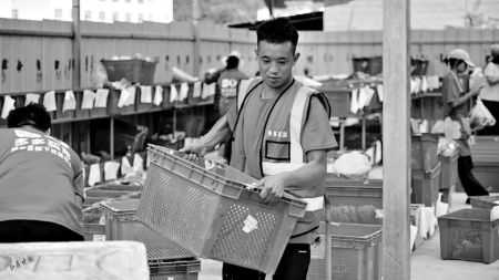 “今天又有活鱼,还有虾,这些要优先配送。”吉克古千一边整理货品,一边大声提醒负责配送的同事。