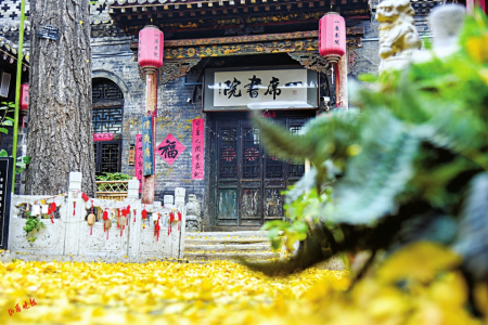 9月5日,秋风徐来。步入“义学堂”,阳光透过院内一棵近500年树龄的高大银杏树叶,在地面洒下斑驳的光影。