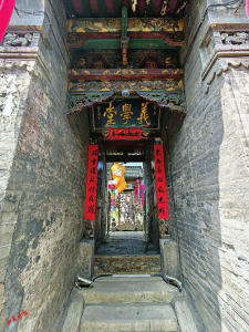 门楼的木雕装饰更是精美绝伦,图案繁复细腻,虽历经百年风雨,仍色彩鲜艳。墀头砖雕是“义学堂”建筑的一大亮点,一对麒麟雕刻寓意“麒麟送瑞”,且不同于常见的砖雕,这里的墀头雕刻重心下移,更便于观赏。