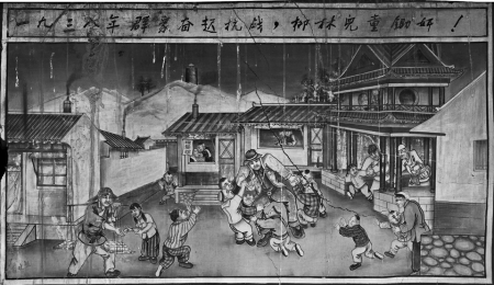 山西离石抗战壁画绘制于1949年4月至5月间,现保存于吕梁市离石区烈士园中的烈士楼内,2017年由晋绥兵民博物馆馆长郝宏武认领并修复。楼内东、西、北三面墙上,绘有离石军民抗战斗争的场景。置身其中,犹如重回到了80年前硝烟弥漫的战争岁月。该壁画是全国稀有的、存世不多的抗战主题壁画,是一部“壁画版”的吕梁英雄传,也是一部生动的晋绥边区抗战图像史。