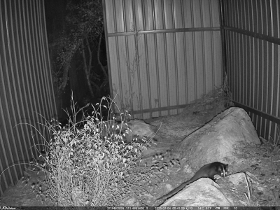 7月4日深夜,庞泉沟核心区域八道沟野生动物庇护所,一台红外相机捕捉到一个矫健的身影——一只体形中等、毛色灰褐、面部标志性白纹清晰可辨的哺乳动物悄然经过镜头。经保护区科研监测中心专家反复确认,这正是国家“三有”(有重要生态、科学、社会价值)保护动物、在保护区野生动物名录上存在多年的果子狸。