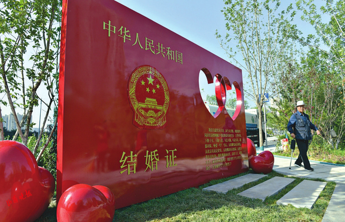 在路边还有许多小公园,设置了“我爱太原”“结婚证”等造型,引来许多市民停留打卡。还有专门的运动场所,很多人带着孩子来游玩。路旁,还有象棋爱好者下棋的身影。
