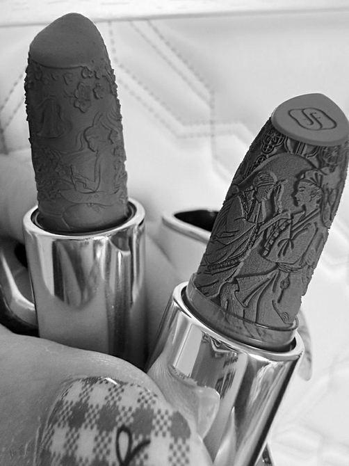 某化妆品牌推出浮雕着古代爱情故事的口红。