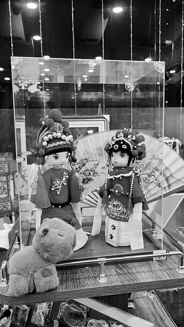 民间艺人手工钩织的“婚娃”满满国潮元素。