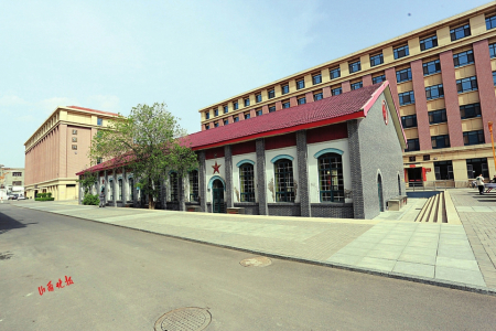 在朔州市朔城区第一中学校园内,现代教学楼、图书馆与餐厅的环绕中,一座红瓦白墙、中西合璧的建筑格外醒目。这座历经近70年风雨仍保存精美的建筑,正是山西第四次全国文物普查的新发现——大礼堂,其与学校同期始建于1956年,1958年正式落成,现作为校史展览馆矗立在校园中心。建筑坐北向南,占地面积达1003平方米,东西长50.88米、进深20.1米,采用人字架梁坡屋顶砖木结构,搭配欧式拱形窗户,厅内可容纳700余人,2017年曾进行专业修缮。其外观庄重大气,青砖贴片的墙柱、洁净的白色墙面与红瓦屋顶相映成趣,融合了中式底蕴与欧式风情。