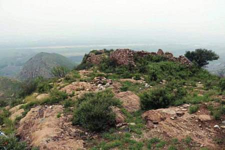 据现场采集到的明清石碑、砖瓦残件及碑文等建筑构件记载,猫寨山遗址在明正统年间、成化年间为避兵之所。清顾祖禹《读史方舆纪要》载:“猫儿砦在州北忻口东,亦曰猫寨,元时戍守处也,明朝正统末,北寇深入,官军拒守于寨口,寇不能陷。”康熙《定襄县志》载:“北寨驻把总一员,马兵二十,步兵四十,岁拨饷银二百两。”至同治年间,随着口外局势缓和,寨兵裁撤,北寨逐渐荒废,成为村民口中的“老营盘”。1937年10月,山寨被日军炸毁。