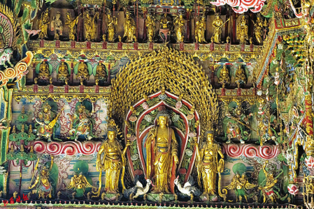 千佛庵大雄宝殿彩绘悬塑艺术群塑被誉为“悬塑绝唱”,具有不可估量的历史和艺术价值。