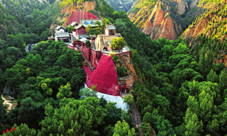 沿隰县紫川河畔蜿蜒而上,凤凰山的轮廓在晨雾中渐次清晰,远远望去,红墙灰瓦的建筑群如同空中楼阁一般坐落在崖壁上。这座始建于明崇祯二年(1629年)的佛教禅宗寺院,因大雄宝殿内千尊佛像得名“千佛庵”,又因重门额题“道入西天”,有佛教西天胜境的法意,又被称为“小西天”。