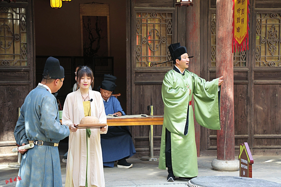 “请随我来。”身着宋制汉服的导游轻拂衣袖,身影隐入涑水书院的回廊深处。这不是寻常的参观,而是一场名为“镜之光莲之旅”的沉浸式演出。每一幕都如同一幅生动的历史画卷,游客穿梭其中,仿佛置身于历史的长河之中,跟随一部剧,穿越千年时光。