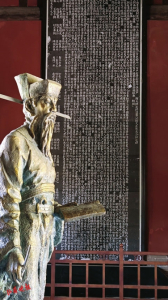 转过碑林,遇见正警枕苦读的司马光。圆木制成的枕头稍一动弹就会滚落,在这里,司马光以圆木为枕,每翻身便惊醒起身,继续编纂《资治通鉴》。导游轻声讲述道:“这块石头,就是他常年放置警枕的地方。警枕十载,编著传奇。”