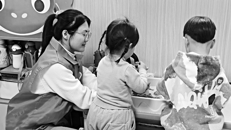 “宝贝,看这里!”游戏区里,志愿者陈敏真跪在地上,与5岁的听障儿童乐乐进行眼神交流。他们面前是一个特制的套圈游戏,陈敏真慢慢示范动作,乐乐仔细观察后,成功套中了第一个圈。那一刻,乐乐转身抱住了陈敏真的脖子——这是他们相处三个月来,孩子第一次主动拥抱。
