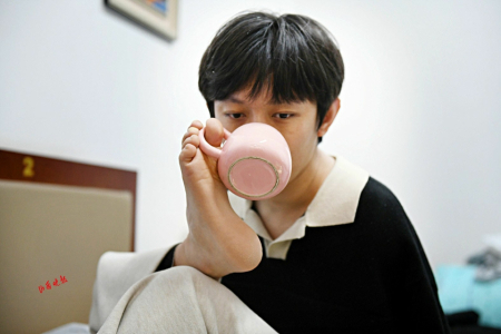 回顾求学路,王海港格外感恩家人的陪伴。尤其是比他大8岁的姐姐,在他初学用脚写字的关键时期,每天陪伴他背古诗、做默写,为他打下坚实基础。“父母对我越没有过高要求,我越想用好成绩回馈他们。”这份亲情支撑着他走过无数艰难时刻,也让他学会以温暖待人。如今的他,早已能坦然面对他人目光,和同学们一同在食堂用餐,用脚拿筷子的动作从容自如,闲暇时还会跑步、玩滑板,用自己的方式丰富生活。