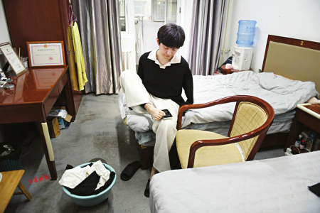 7.王海港在学校的关怀下住进了“阳光宿舍”。