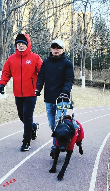 “王哥,这边走,慢下台阶!”“李姐,穿得够厚吗?别冻着!”亲切的呼唤声中,志愿者迎上前搀扶,接过他们手中的导盲杖,牵起导盲犬的牵引绳,与跑友紧紧相握。