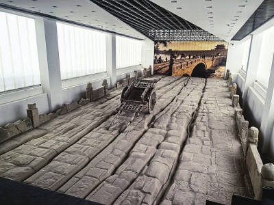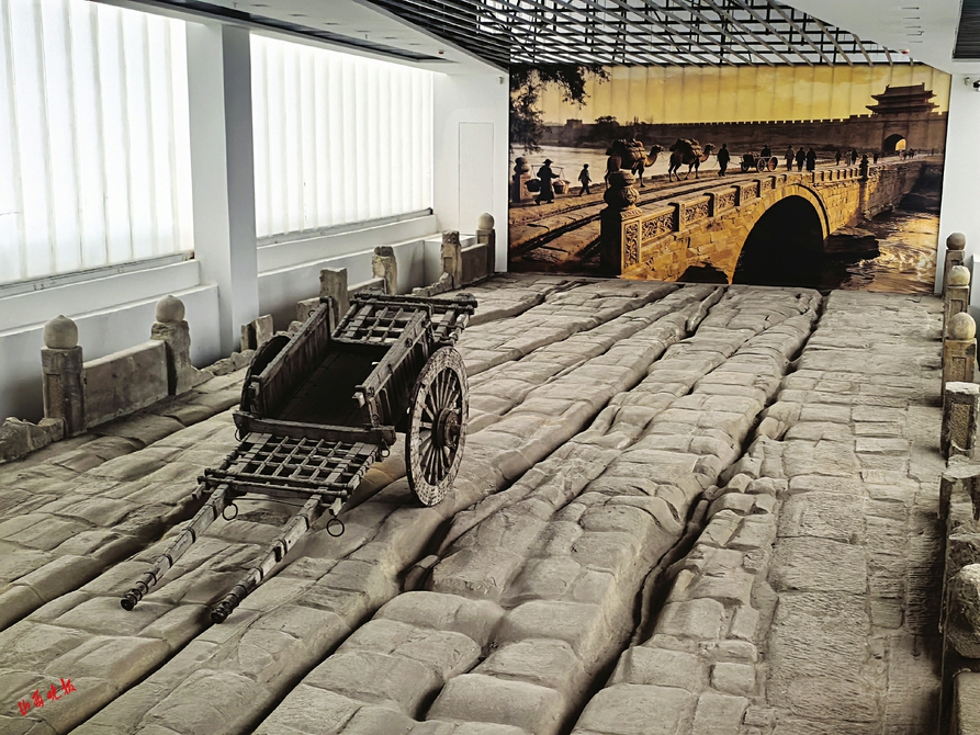 站在镇远桥遗址馆内,镇远桥的全貌尽收眼底。最令人动容的,莫过于桥面上那一道道深深的车辙。这深深的车辙痕迹,见证了600年前穿梭往来于其上的车碾、马踏留下的烙印。那一深一浅的印记,如同刻在时间骨骼上的皱纹。