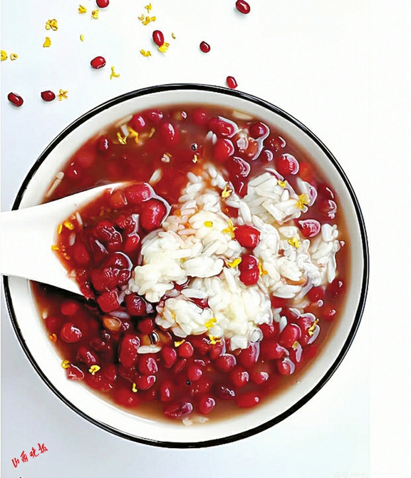 取红豆100克、酒酿50克、冰糖20克、干桂花少许,红豆提前浸泡4小时,加3倍水大火煮沸,转小火煮1小时至开花,加冰糖搅拌融化,取1/3红豆压成泥回锅,加入酒酿微煮2分钟即可。关火后撒桂花,焖3分钟,香气更浓郁。