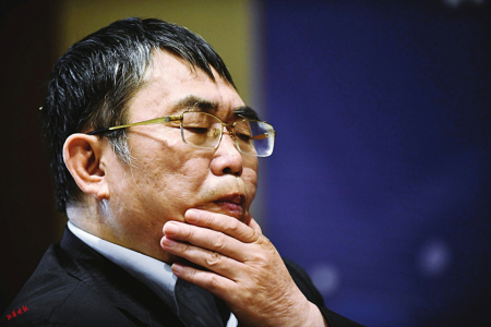 2019年10月23日,中国棋手聂卫平在2019年中韩围棋国手友谊赛中思考。