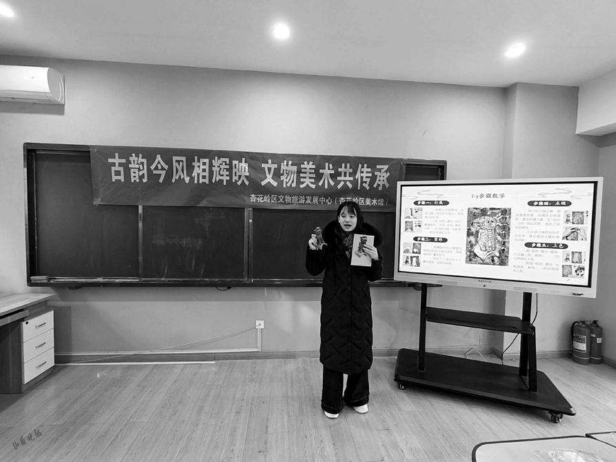 理论分享结束后,区文旅发展中心工作人员现场教授居民黏土脊兽的制作方法与步骤。