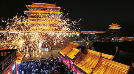 • 忻州古城打铁花表演。(资料图) 图片来源山西忻州古城微信公众号