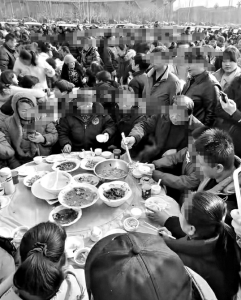 “欢迎全国各地的朋友来山西,参加我的‘猪猪宴’,全场一分钱都不用花。”吕梁市某博主举办杀猪宴发视频广邀外地网友参加。“猪猪宴”活动现场的视频显示,聚餐活动地点位于一个广场,空地摆放满桌椅板凳,来自本地的年轻人举着手机直播,说“要让网友看看咱山西年俗”;还有从邻近市、县赶来的游客,专程来品尝晋中杀猪宴。“邻村的人都过去帮忙了,让那些外地来的朋友们坐下来品尝山西菜。”