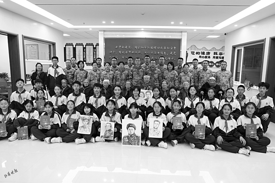 近日,太原平民中学的少先队员走进共建单位山西省军区太原某离职干部休养所,开展“时光对话·肖像传承”主题活动,为老红军、老八路、老前辈精心绘制青年时代肖像,在笔墨流转间架起红色基因传承的桥梁。“此次活动是进一步推动红色基因代际传承的创新实践。”干休所相关负责人表示。