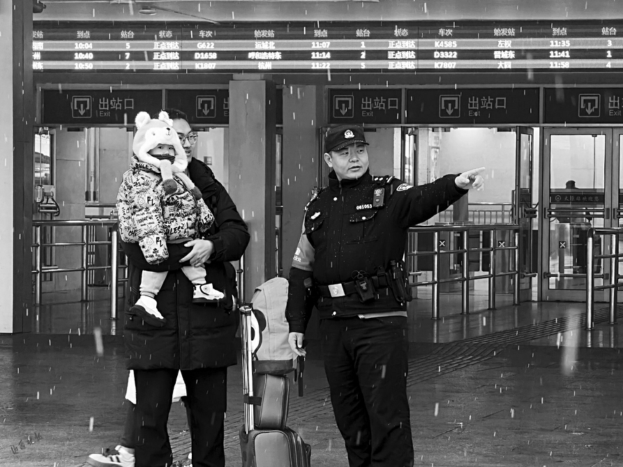 1月25日,受强降雪天气影响,太原站派出所迅速启动应急响应机制,科学部署警力,加强站区巡逻密度和视频巡查频次,在进站口、候车大厅、站台等重点区域疏导人流,及时帮助老幼病残孕等重点旅客安全乘降,维护站车秩序,同时加强安全宣传提示,提醒旅客注意防滑防摔,看管好随身行李物品。确保候车环境井然有序。 太原铁警将持续关注天气变化,以最高标准、最实举措,坚决筑牢安全屏障,确保恶劣天气下铁路运输安全有序,守护每一位旅客的平安旅程。