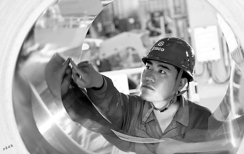 牛国栋的工作直接关系到太钢高端产品的质量。他为“手撕钢”提供基础冷轧原料,带领团队将厚度命中率提升至99.5%,板型平直度做到业内最优。他总结出“精、细、勤”三字诀,练就了“一听准”判断设备运行、“一眼判”钢板平整度的绝活,为高端产品研发筑牢了根基。