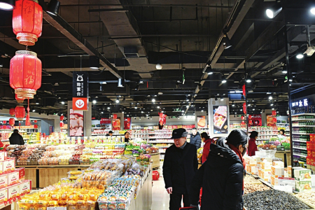 1月25日,一场降雪,为城市披上银装。这场大雪,也给神农美特好带来一场关于服务与应急的“加试”。1月26日,神农美特好双塔东街店入口,崭新的防滑垫从门外一直延伸到室内主要通道,并有工作人员不断清扫积雪、提示顾客小心地滑。服务台旁设立了临时的“热水供应站”,为清扫积雪的环卫工人和感到寒冷的顾客提供一杯暖饮。对于购买较多商品的老年顾客,身穿志愿者马甲的工作人员会主动上前,帮忙进行商品搬运。店内,生鲜货品供应充足,补货及时,并未因天气受到影响。收银线也运行流畅,未出现长时间排队现象。
