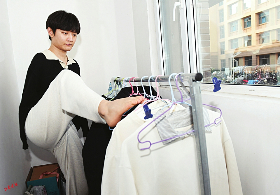 “我还是从前那个少年,没有一丝丝改变。”《少年》的轻快旋律响起,恰如王海港给人的初印象——1月6日,初见时他端坐办公桌前,脚趾在键盘上灵活跳跃,抬头一笑的开朗,全然冲淡了无臂带来的沉重感,眼里满是对科研的热忱与少年意气。