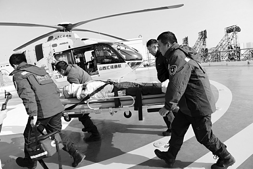•   山西晚报·山河+讯(记者 武六红)1月28日下午,在旋翼卷起的强风中,一场与时间赛跑的“生命救援”在山西医科大学第一医院(以下简称“山医大一院”)的停机坪紧张上演——这不是真正的险情,而是一场高度仿真的航空医学救援实训演练。