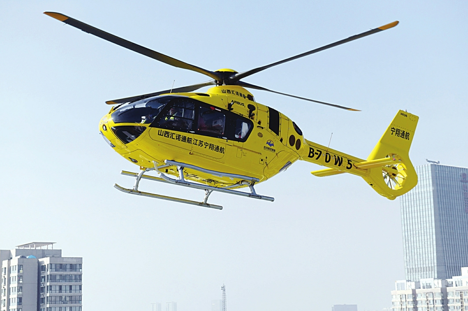承担此次飞行任务的山西汇诺通用航空有限公司总经理康国伟介绍,此次演练所使用的H135医疗构型直升机,是目前全球航空医疗救援领域的主流机型。机舱内配备了呼吸机、监护仪、吸引器、输液泵、担架等全套进口医疗设备,俨然一个紧凑而高效的“空中ICU”。这一切配置真正实现了“上机即入院”的救护理念,为生命赢得黄金抢救时间。