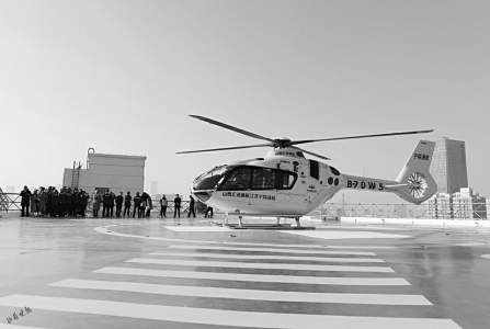 2.山医大一院与汇诺通航联手开展“空中救援”演练。