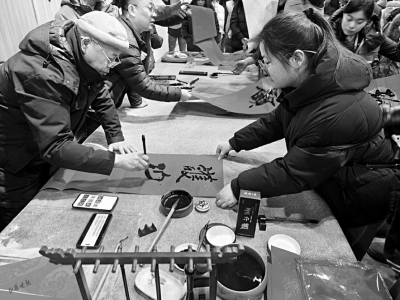 在互动体验区,展览与新春年俗深度融合,打造了一系列“宋钱贺岁”春节限定活动。“挥春纳福”书法惠民区里,名家将宋代钱币上的“福”“祥”“宁”等铭文元素与新春“福”字、春联巧妙结合,落笔即是“古钱映福”的独特年味;“泉”心“泉”意新春手作体验区中,葫芦烙画、剪纸等非遗传承人携手太原市文物考古研究院,指导观众创作非遗手作,每一件手作都兼具钱币特色与新春氛围;“新春拓福”活动中,工作人员现场示范考古拓印技艺,手把手教观众用宣纸、拓包拓印宋代铜钱纹样,还贴心准备了“福字拓纸”“新春拓印套装”,让大家在亲手拓印的过程中,感受“拓印交子,收获一份福气”的乐趣。同时结合拓印成果,详解“如何通过钱文、形制区分不同朝代的普通钱币”,让观众在新春互动中直观感受“普通文物”背后的古人智慧与吉祥寓意。