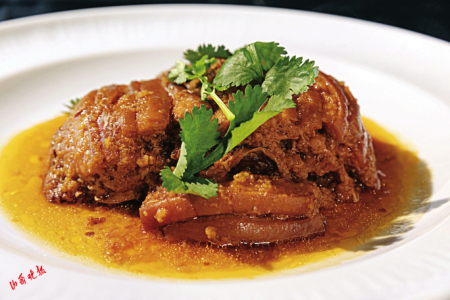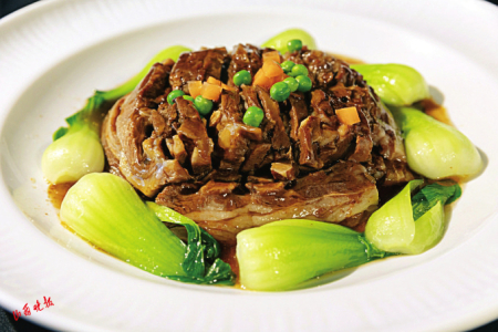 “在这次制作红扒蹄筋的时候,我们还借鉴了西餐的一些烹饪理念,煮蹄筋的汤料我们就是按照西餐的一些做法,加入了西芹、洋葱等蔬菜,同样是让蹄筋的味道更丰富一些。”李斌慧说,“过去老菜的时代感不行了,这次对一些老晋菜从原料到技术上都做了不少改进,目的就是能让老菜重新得到食客的认可。”
