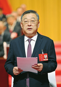 上午9时,唐登杰宣布:山西省第十四届人民代表大会第五次会议开幕。会场全体起立,奏唱国歌。
