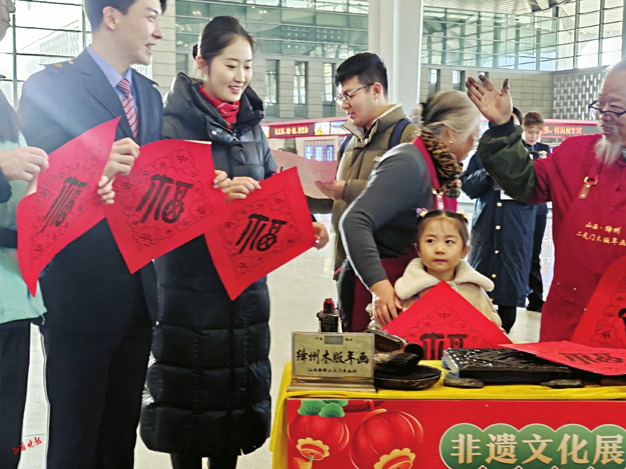 旅客们脸上洋溢着期盼,有的把刚领到的福字贴在行李箱上,红色的福字与各色行李箱相映成趣;有的小心翼翼地把福字折好放进背包,仿佛珍藏着一份珍贵的礼物。刚领到福字的大学生小周对山西晚报·山河+记者说:“第一次独自春运回家,本来有点忐忑,没想到车站这么热闹,还收到了福字,志愿者特别热情,帮我找到了候车区,还告诉我哪里能充电、哪里能借书,心里暖暖的,已经开始期待年夜饭了。”