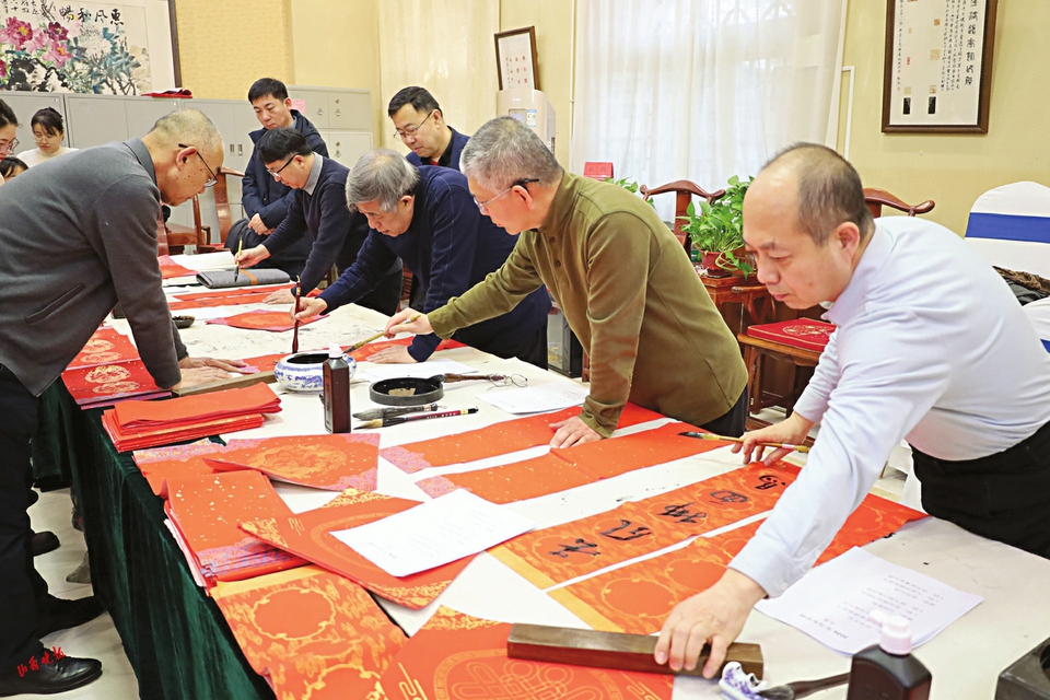 活动当天,还举办了宝贤堂法帖学术交流活动和“喜迎马年”省市书法家双塔博物馆书写春联活动。在学术交流活动中,来自山西省书法家协会、山西省三晋文化研究会、山西大学、山西师范大学的专家学者,山西省考古研究所、太原市文物系统的文物保护专家,书法爱好者、社会研究者等齐聚一堂,围绕宝贤堂拓本的版本渊源、艺术特色、地位影响及文化传承等展开深度对话,为后续的文物研究与保护工作注入新的思路与活力。书写春联活动中,双塔博物馆变身热闹的“文化集市”,省市书法家凝神聚气,笔走龙蛇,隶、楷、行、草等多种书体各显神韵,一副副笔力遒劲、寓意吉祥的春联应运而生。现场群众热情高涨,纷纷驻足等候,不时发出阵阵赞叹。