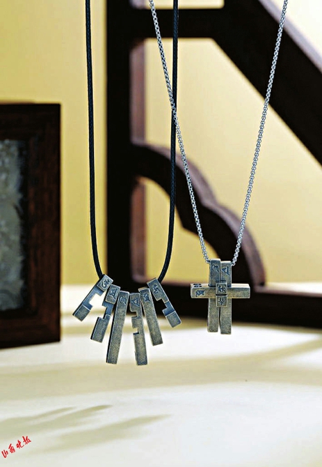 李娜娜的文创首饰设计灵感,几乎都源于山西的文化遗产。应县木塔上的麻燕,被她化作别针上的流苏装饰,灵动又别致;古建屋檐的曲线,成为猫咪耳针的堵扣造型,仿佛一只猫咪在飞檐走壁;榫卯结构这一中国传统建筑的精髓,被她拆解重组,设计成由6根银棍组成的项链,可拼接成鲁班锁样式,银棍上还雕刻着“眼、耳、鼻、舌、身、意”的汉字,兼具美感与哲思。此外,山西博物院收藏的青铜盘鱼纹,化作“年年有鱼”“如鱼得水”的系列首饰;陶寺博物馆出土的彩绘蟠龙盘,催生了“龙之起源”的设计灵感。