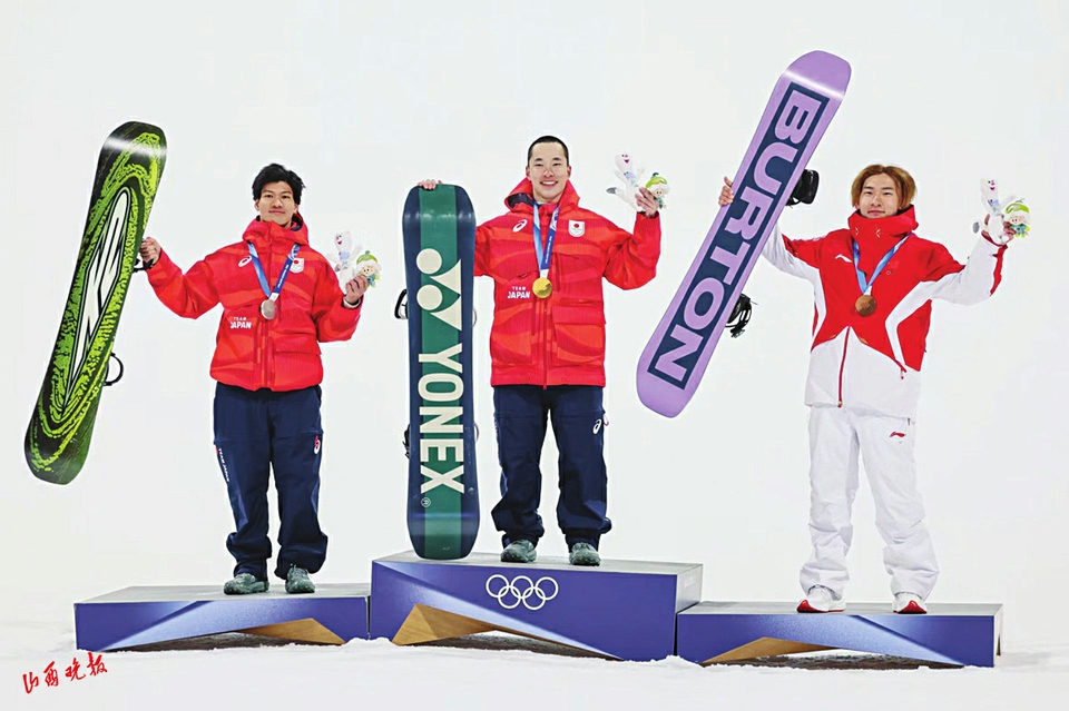 • 苏翊鸣(右)在颁奖台上。 钱俊摄
