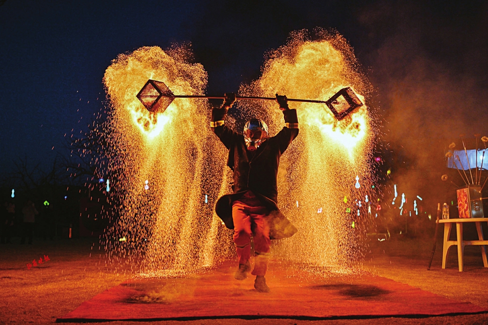 1.正月初三,稷山县国家板枣公园枣乡音乐营地内,精彩的火壶表演为游客献上一场震撼的视觉盛宴。
