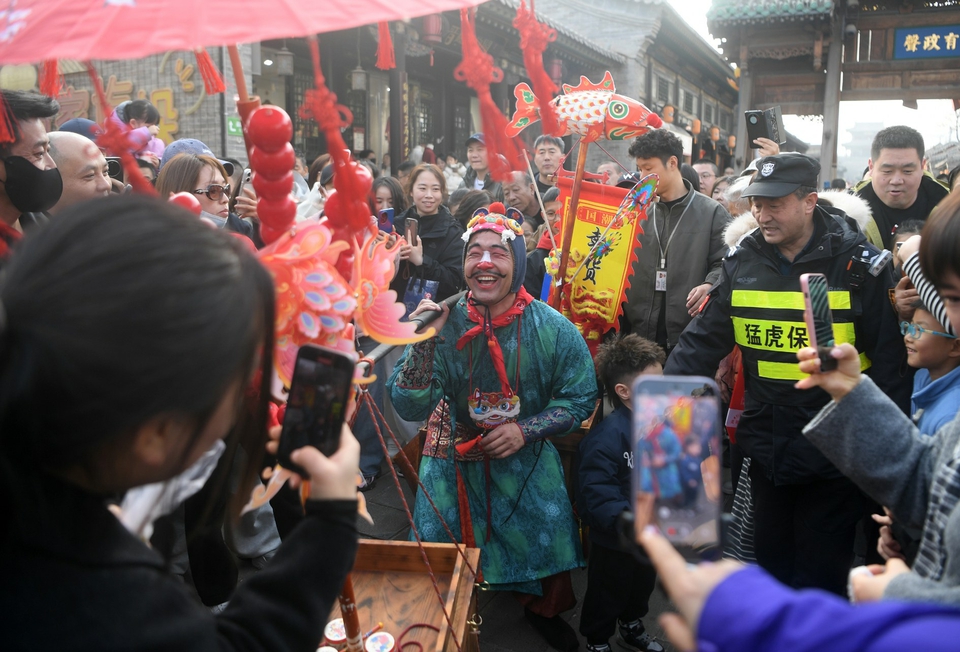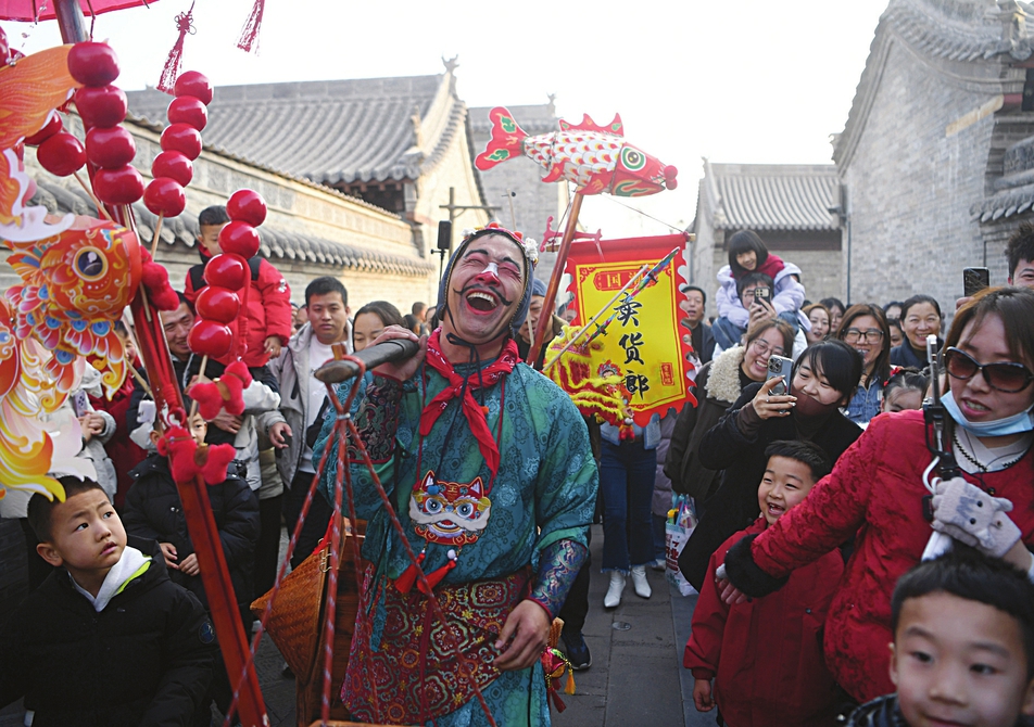 2月25日,一位“卖货郎”成为今年春节太原古县城里的“顶流”NPC,他诙谐幽默的互动表演逗得游客“笑到停不下来”,被网友戏称为春节“显眼包”。作为古县城“欢乐中国年”系列活动的一部分,卖货郎用最传统的市井角色演绎出现代的综艺感,让游客在沉浸式体验中感受传统文化的魅力。